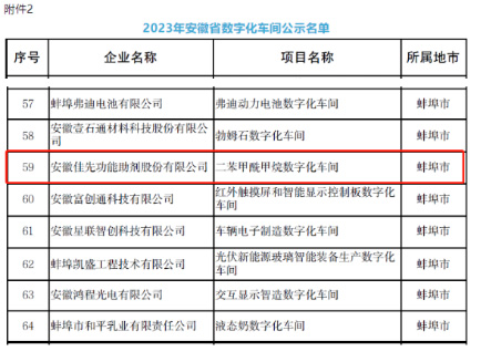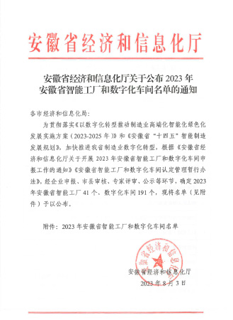 | 熱烈祝賀佳先股份入選2023年安徽省智能工廠和數(shù)字化車間名單 |