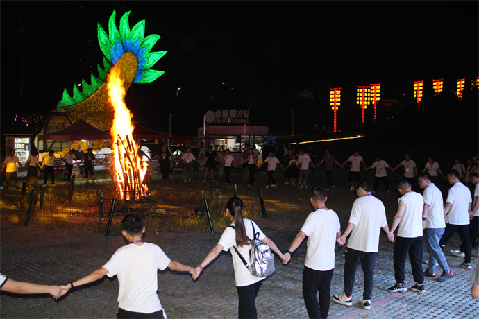 4、參觀桃花源燈展及篝火晚會(huì) 釋放壓力、煥發(fā)活力。夜晚來(lái)臨,在禾泉小鎮(zhèn)桃花源記,一場(chǎng)異彩紛呈的燈光秀后,篝火晚會(huì)拉開(kāi)了帷幕,所有人手拉手,在極致的氛圍下,解放天性,全身心放松沉浸其中,釋放了沉積的工作壓力,煥發(fā)了新的活力和熱情。