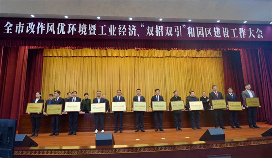 2月8日上午,蚌埠市召開“全市改作風優(yōu)環(huán)境暨工業(yè)經濟、“雙招雙引”和園區(qū)建設工作大會”。佳先股份榮獲2021年度蚌埠市工業(yè)發(fā)展先進集體稱號,佳先股份董事長李兌代表公司上臺領獎。