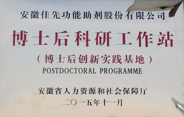 2015年11月12日,安徽省人力資源和社會保障廳發(fā)布《關(guān)于合肥神馬科技集團(tuán)有限公司等30個(gè)單位設(shè)立安徽省博士后科研工作站的通知》(皖人社秘〔2015〕363號),佳先股份順利通過專家評審,獲批設(shè)立“安徽省博士后科研工作站”。 近年來,佳先股份不斷建立和完善科技創(chuàng)新和研發(fā)體系、加大科技投入、組織進(jìn)行新產(chǎn)品、新技術(shù)的開發(fā)和應(yīng)用,依靠科技進(jìn)步與創(chuàng)新培育核心技術(shù),積極研 究具有自主知識產(chǎn)權(quán)的新技術(shù)。目前,公司已擁有3項(xiàng)發(fā)明和12項(xiàng)實(shí)用新型專利,建有省級企業(yè)技術(shù)中心和省級工程技術(shù)研究中心,中心建筑面積約2000平方 米,配套的實(shí)驗(yàn)、化驗(yàn)設(shè)備和分析儀器及中試設(shè)備數(shù)150多臺套,可以同時(shí)承擔(dān)多個(gè)項(xiàng)目的研發(fā)工作,打造了一支專業(yè)從事環(huán)保型輔助熱穩(wěn)定劑行業(yè)的產(chǎn)業(yè)創(chuàng)新團(tuán) 隊(duì),研發(fā)水平同行業(yè)領(lǐng)先,并為博士后工作站的設(shè)立創(chuàng)造了必要條件。